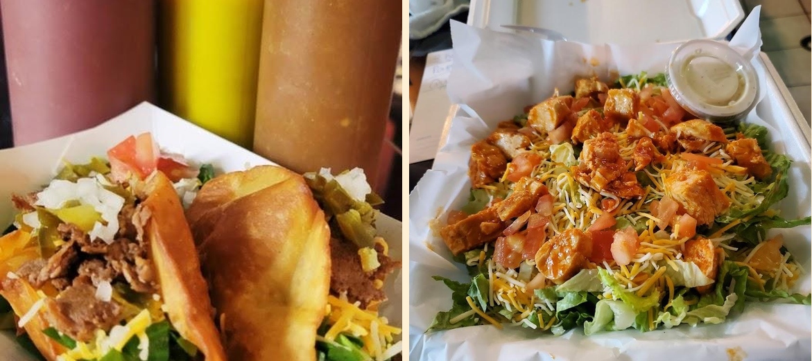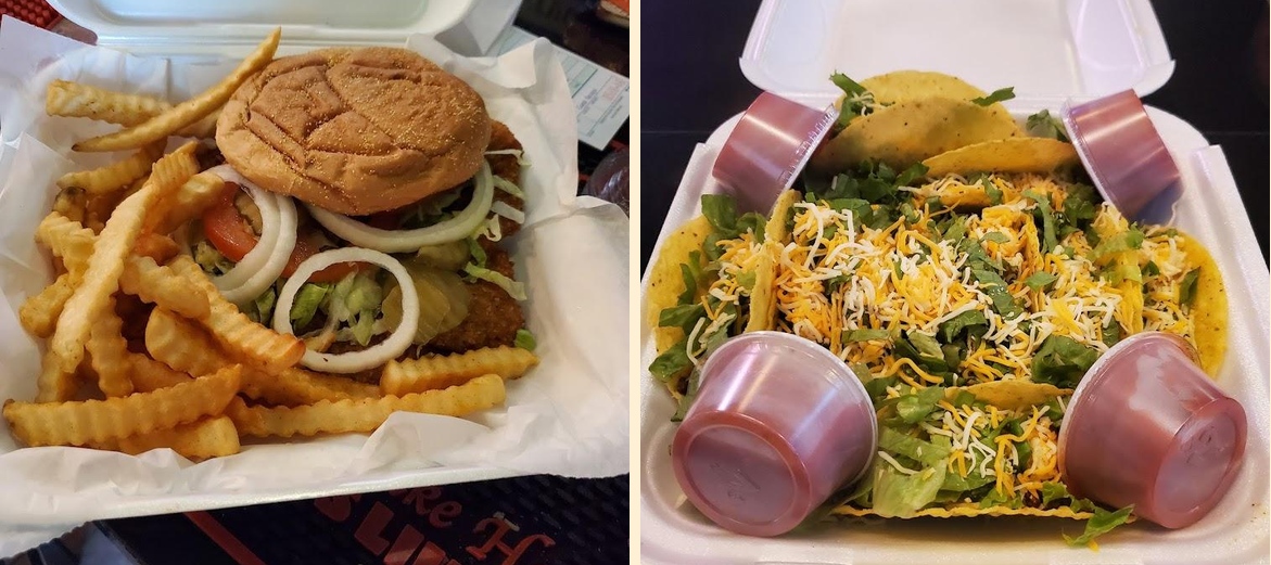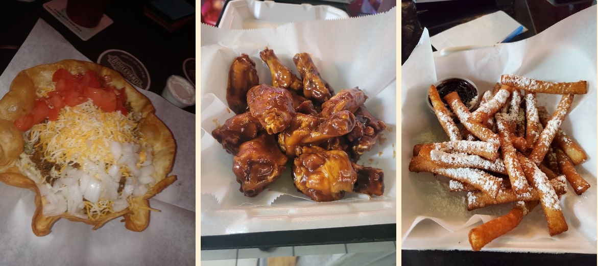 Popular dishes include crispy tacos, burgers like the Patty Melt, and unique appetizers like Jalapeno Poppers. Don't forget to try the Funnel Cake Fries for dessert!