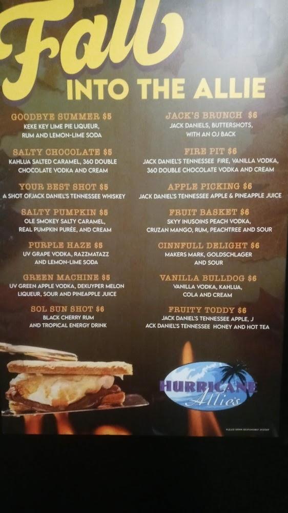 Welcome to Hurricane Allie's Bar & Grill, your cozy neighborhood spot in the heart of Merriam! Indulge in our delicious food and refreshing drinks while enjoying a lively atmosphere complete with karaoke, live music, and games like pool and darts. Dine inside or soak up the sun on our inviting outdoor patio. Whether you’re stopping by for lunch, dinner, or a late-night snack, our friendly staff is ready to serve you quickly. Join us for happy hour specials, local specialties, and an unforgettable experience that brings friends and community together. Come on in and let the good times roll!